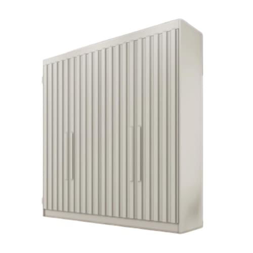 O Guarda RoupaPotente - Móveis Europaune praticidade, espaço e elegância em um só item. Seu design moderno é acentuado pelas portas ripadas de madeira, complementado por um acabamento em Verniz UV que proporciona uma escala de brilho semi-brilho e uma durabilidade excepcional. Fabricado em 100% MDF (Madeira de Reflorestamento), o roupeiro destaca-se pelas suas 6 portas elegantes com grandes puxadores em madeira e 6 gavetas internas, uma dessas gavetas possuem chave, oferecendo segurança adicional para seus itens mais preciosos e são equipadas com puxadores modernos. O Guarda Roupas inclui ainda 2 sapateiras com corrediças telescópicas, prateleiras espaçosas e cabideiros em alumínio, garantindo um excelente aproveitamento dos espaços internos e alta durabilidade. Para maior resistência e durabilidade, o móvel conta com costas parafusadas.