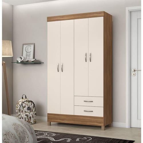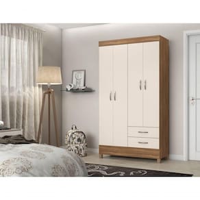 Guarda Roupa 4 Portas Udini Amendola Off-white Esse guarda roupa se destaca pela ótima configuração interna, devido às prateleiras e o maleiro, indicado para quartos de solteiro e juvenis Possui 4 portas e 2 gavetas externas, todas com corrediças telescópica