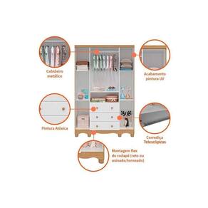 Material dos Cabideiros - Cabideira Metálico Tipo de Dobradiças - Dobradiças Metálicas Quantidade de Portas - 4 Portas de Abrir Tipo de Corrediça - c/ Corrediças Telescópicas Quantidade de Gavetas - 3 Tipo dos Pés - ABS/PVC Quantidade de Prateleiras - 5