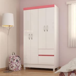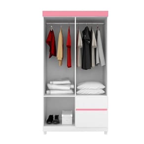 O guarda roupa Lotus é compacto e agrega funcionalidade em seu interior. Dois compartimentos com cabideiros e duas gavetas. Com montagem para a cor branco ou branco/rosa se destacam como diferenciais do móvel. Confeccionado em MDP de alto padrão, acabamento com pintura UV, tudo para o melhor desempenho do produto.