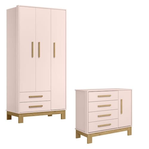 Guarda Roupa 4340 e Cômoda 4355 Q Encanto Slim Rosa Acetinado - Qmovi