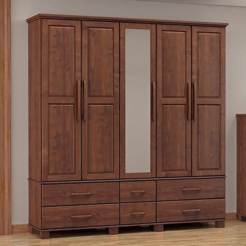 Modelo: Guarda Roupa 5P 6G Espelho Madeira Maciça 208 cm 2253 Milani Store