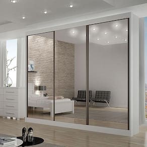 Guarda Roupa 6 Gavetas San Marino Premium com 3 Espelhos Branco Leifer Móveis
