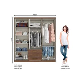 Dimensões(Cm): Comnto(Profundidade): 181cm x Largura: 47cm x Altura: 200cm Material de Estrutura - MDF/MDP Tipo de Pintura - Ultravioleta Tipo de Acabamento da Pintura - Pintura Fosca Tipo de Cabideiro - Aéreo Material dos Cabideiros - Cabideira Metálico Tipo de Dobradiças - Dobradiças Metálicas Tipo de Corrediça - c/ Corrediças Metálicas Quantidade de Gavetas - 3 Montagem do Produto - Desmontável