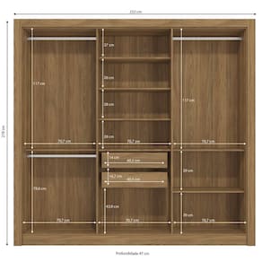 Caracteristicas: Marca: Kappesberg Modelo: M569 Material: MDP Acabamento: Pintura UV Quantidade de Portas: 06 portas Material das Dobradicas: Metalicas Quantidade de Gavetas: 02 gavetas Material das corredicas: Metalicas Quantidade de Puxadores: 06 puxadores em MDF Quantidade de Prateleiras: 07 prateleiras Quantidade de Cabideiros: 03 cabideiros Material dos Pes: MDP Sistema de Montagem: Parafuso philips