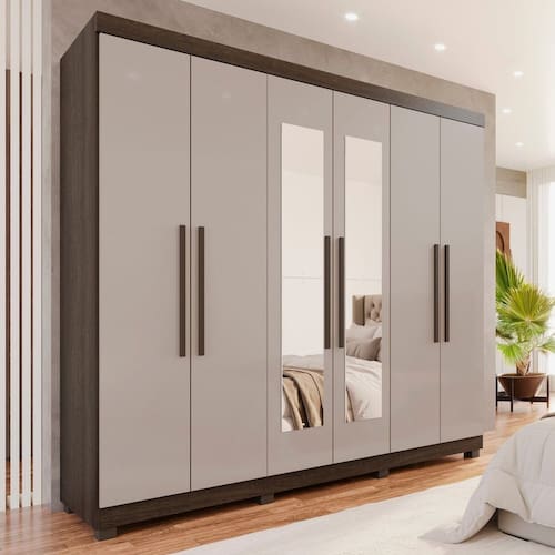 O Guarda-roupa New Malibu é uma escolha confiável para quem busca durabilidade e funcionalidade. Com sua estrutura sólida em chapa de 15 mm, amplo espaço interno e portas com espelho, oferece organização e praticidade. Seu design inteligente, com detalhes como cabideiro em alumínio e corrediças telescópicas, torna-o uma opção com excelente custo-benefício para qualquer ambiente. Acabamento da Prateleira: BP Melamínico Escala de Brilho da Prateleira: Fosco Possui Cabideiros: Sim Acabamento da Gaveta: BP Melamínico Escala de Brilho da Gaveta: Fosco Possui Organizador de Gaveta: Não Acabamento da Porta: BP Melamínico Escala de Brilho da Porta: Fosco Altura do Espelho: 80 cm Altura dos Pés: 7 cm Altura Máxima dos Pés: 7.0000 Ambiente Principal: Quarto Complexidade da Montagem: Alta: deve ser montado por um montador especializado Cor: Imbuia/Off White Cor do Produto: Imbuia/Off White Escala de Brilho: Fosco Espessura do Espelho: 3 mm Formato do Espelho: Retangular Gaveta com Chave: Não Itens Inclusos: 1 Guarda roupa, manual de montagem e kit ferragens. Largura do Espelho: 23 cm Linha ou Coleção: New Malibu Manual de Montagem e Instalação: https://product-hub-prd.madeiramadeira.com.br/919825/documents/edc2875a-2cbc-40a5-8e42-719507f42a182094890524617194968571665.pdf Material da Gaveta: MDP Material da Porta: MDP Material da Prateleira: MDP Material dos Pés: PVC Material Principal: MDP modular: Não Necessita Montagem: Sim Origem do Produto: Nacional Peso: 162,8 kg Peso Máximo por Gaveta: 5 kg Peso Máximo por Prateleira: 10 kg Possui Calceiros: Não Possui Espelho: Sim Possui Pés: 08 Possui Portas: Sim Possui Prateleiras: Sim Produto Montado: Sim Quantidade de Espelho: 04 Espelhos com Tamanhos Iguais Quantidade de Gavetas: 04 Gavetas Recomendações de Uso, Manutenção e Limpeza: Pano levemente umedecido e pano seco. Não utilizar produtos de limpeza Sistema de Montagem: Parafusos e cavilhas Suporta Até (kg): 200 kg Tipo de Corrediça da Gaveta: Metálica Telescópica Tipo de Dobradiça/Corrediça da Porta: Metálica Tipo de Fixação do Espelho: Parafusos Tipo de Gaveta: Interna Tipo de Guarda-Roupa: Casal Tipo de Puxador da Gaveta: Não Possui Tipo de Puxador da Porta: Externo