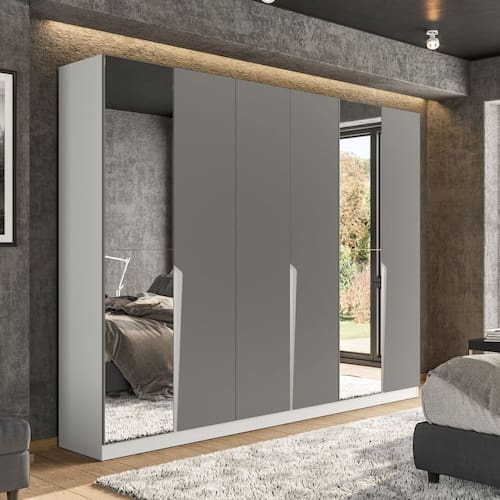 O guarda-roupa 6 portas 4 gavetas Porto com espelho, da Politorno Móveis, é a escolha ideal para quem busca sofisticação, funcionalidade e amplo espaço de armazenamento. Com 200 cm de altura, 242,1 cm de largura e 46 cm de profundidade, oferece excelente organização para roupas, calçados e acessórios. Seus espelhos agregam elegância e sensação de amplitude ao ambiente. Produzido em MDP/MDF, possui acabamento em pintura UV e FF, garantindo alta durabilidade e resistência. As gavetas contam com corrediças telescópicas para um deslizamento suave, enquanto os puxadores embutidos proporcionam um design clean e moderno. Perfeito para um quarto organizado e requintado. Acabamento da Prateleira: Pintura UV Escala de Brilho da Prateleira: Semi-Fosco Possui Cabideiros: Sim Acabamento da Gaveta: Pintura UV Escala de Brilho da Gaveta: Semi-Fosco Possui Organizador de Gaveta: Não Acabamento da Porta: Pintura UV Escala de Brilho da Porta: Semi-Fosco Altura do Espelho: 191 cm Altura dos Pés: 10 cm Altura Máxima dos Pés: 10.0000 Ambiente Principal: Quarto codigo_ean: 7900288094261 Complexidade da Montagem: Média: pode ser montado por mais de uma pessoa e/ou necessite de maior conhecimento para montagem Cor: Branco/Cinza Cor do Produto: Branco/Cinza Cor do Puxador: Cinamomo Cor Interna: Branco Escala de Brilho: Semi-Fosco Espessura da Estrutura (mm): 15 mm Espessura das Portas (mm): 15 mm Espessura das Prateleiras (mm): 15 mm Espessura do Espelho: 3 mm Espessura do Fundo (mm): 3 mm Espessura do Fundo das Gavetas (mm): 9 mm Fita Integrada: Sim Formato do Espelho: Retangular Gaveta com Chave: Não Itens Inclusos: 1 Guarda-Roupa + Kit de Ferragens + Manual de Montagem + Termo de Garantia Largura do Espelho: 39 cm Linha ou Coleção: Porto Manual de Montagem e Instalação: https://product-hub-prd.madeiramadeira.com.br/981736/documents/c6dfdd0a-b555-4b38-be49-17ee5d8bd52f2752067622417423305608387.pdf Marca: Politorno Material da Gaveta: MDF/MDP Material da Porta: MDF/MDP Material da Prateleira: MDF/MDP Material dos Pés: MDF Material Principal: MDF/MDP modular: Não Necessita Montagem: Sim Nicho com Cabideiro: Não Origem do Produto: Nacional Peso: 111,3 kg Peso Máximo por Gaveta: 3 kg Peso Máximo por Prateleira: 5 kg Porta Janelada: Não Possui Calceiros: Não Possui Espelho: Sim Possui Pés: Rodapé Possui Portas: Sim Possui Prateleiras: Sim Produto Montado: Sim Quantidade de Cabideiros: 04 Cabideiros Quantidade de Espelho: 04 Espelhos com Tamanhos Iguais Quantidade de Gavetas: 04 Gavetas Quantidade de Portas com Espelhos: 2 Portas com Espelho Quantidade de Prateleiras: 04 Prateleiras Recomendações de Uso, Manutenção e Limpeza: Utilize um pano macio umedecido com água e sabão neutro, seguido de pano seco. Não utilize produtos químicos ou abrasivos para limpeza, pois estes danificam o revestimento do móvel. Sistema de Montagem: Cavilha, Parafuso, Minifix e prego Tipo de Corrediça da Gaveta: Metálica Telescópica Tipo de Dobradiça/Corrediça da Porta: Metálica Tipo de Fixação do Espelho: Fita Dupla Face Tipo de Gaveta: Interna Tipo de Guarda-Roupa: Casal Tipo de Puxador da Gaveta: Não Possui Tipo de Puxador da Porta: Embutido