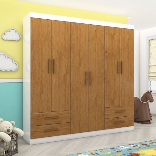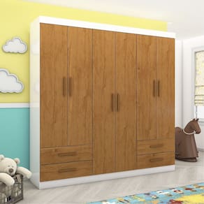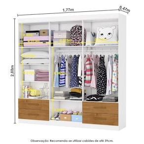 O Guarda-Roupa Infantil Perola 6 Portas 4 Gavetas, é ideal para quem procura um produto compacto e funcional. Possui 2,00m de altura, 1,77m de largura e 0,47m de profundidade combinado com 4 gavetas, 6 prateleiras e um grande cabideiro, deixando o produto com uma ótima divisão interna. O maleiro é ideal para guardar malas, cobertores, edredons. O cabideiro além de resistente, é ideal para pendurar pares de blusas, camisas acessórios. As prateleiras são perfeitas para colocar roupas como blusas, shorts, regatas, kits de maquiagem, toalhas, caixinhas com acessórios e bolsas menores. As gavetas fixadas sobre corrediças metálicas, são ideais para guardas blusas dobradas, shorts, malhas e roupas íntimas. Estrutura do produto em MDP.
