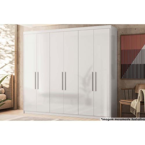 CARACTERÍSTICAS DE MÓVEIS Tipo de Estrutura do Móvel - MDP Tipo de Pintura - UV Tipo de Acabamento da Pintura - Fosca Tipo de puxador - ABS/PVC Quantidade de Prateleiras - 5 Prateleiras Quantidade de Gavetas - 4 Gavetas Diferenciais da Gaveta - c/ Corrediças Telescópicas Quantidade de Portas - 6 Portas de Abrir Garantia - 3 meses