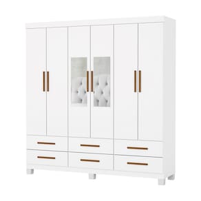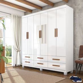 Guarda-roupa 6 Portas 6 Gavetas com Espelho e Pés Denver Branco
