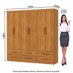 Guarda-Roupa Denver 6 Portas 6 Gavetas , é um produto perfeito para quem possui um ambiente com espaço reduzido e ainda procura qualidade e durabilidade no mesmo móveis. Possui 1,87m de altura, 1,53m de largura e 0,40m de profundidade combinado com 6 portas, 6 gavetas, 2 prateleiras e um grande cabideiro, deixando o produto com uma ótima divisão interna. As prateleiras são perfeitas para colocar roupas como blusas, shorts, regatas, kits de maquiagem, toalhas, caixinhas com acessórios e bolsas menores. As gavetas fixadas sobre corrediças metálicas, são ideais para guardas blusas dobradas, shorts, malhas e roupas íntimas. Estrutura do produto em MDP.