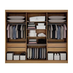 Destaque para o Roupeiro que conta com amplo espaço interno, diversas divisórias e gavetas. O local perfeito para se guardar roupas e acessórios.