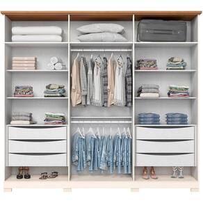 Caracteristicas: Guarda-Roupa Marca: Henn Modelo: Napoli Matéria-prima: Caixa: MDP 15 mm | Interno: MDP 15 mm/12 mm/25 mm | Frente: MDP 15 mm/12 mm/25 mm | Fundo: MDF 3 mm Revestimento: Pintura UV Acabamento: Brilho Portas: 06 portas de abrir Dobradiças: Metálicas Gavetas: 06 gavetas Corrediças: Telescópicas Puxadores: Alumínio Espelho: 04 espelhos Prateleiras: 05 prateleiras Cabideiros: 02 cabideiros Pés: ABS Altura dos pés: 5 cm Sistema de montagem: Parafusos, Cavilhas e Minifix Diferenciais: Detalhes ripados nas portas