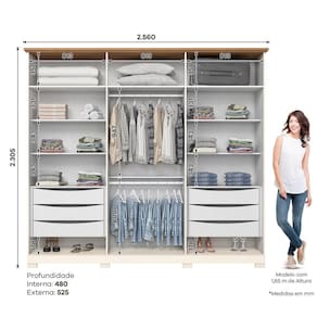 Ele conta com 6 portas de abrir, 6 gavetas e 5 prateleiras, ideais para você guardar tudo o que você deseja.