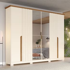 Conteúdo de Embalagem: 01 Guarda-Roupa 6 Portas com Espelho Napoli Henn