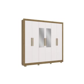 Guarda-roupa 6 Portas e 2 Gavetas com Pés e Espelho Nogueira/Branco - Marrom