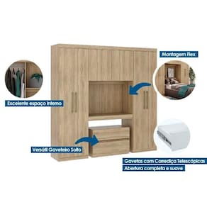 Tipo de puxador - ABS/PVC Quantidade de Portas - 6 Portas de Abrir Quantidade de Gavetas - 2 Gavetas Tipo de Corrediça - Metálicas Quantidade de Prateleiras - 3 Prateleiras Quantidade de nichos - 1 nicho