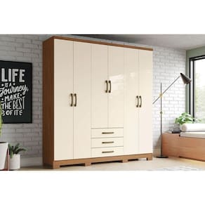 Tipo de Cabideiro - Aéreo Material dos Cabideiros - Cabideira Metálico Tipo de Dobradiças - Dobradiças Metálicas Quantidade de Portas - 6 Portas de Abrir Tipo de Corrediça - c/ Corrediças Metálicas Quantidade de Gavetas - 3 Tipo dos Pés - ABS/PVC - Pés Opcionais Quantidade de Prateleiras - 6