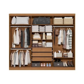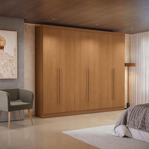 Aposte no Roupeiro T580 da Kappesberg. Com seis portas e três gavetas, são 2,30m de altura, 2,70m de largura e 47cm de profundidade, 100% em MDP, para mais organização e durabilidade. Sua pintura touch na cor canela, com a textura dos veios da madeira, remete aos tons da natureza e combina com todos os espaços. Os puxadores alongados completam o charme do produto. Perfeito para quem gosta de espaço, nos nichos de tamanhos diferentes você organiza calçados e roupas dobradas nas prateleiras. Os cabideiros, metálicos e com suporte interno, são ideais para peças maiores, como casacos e vestidos. Já as gavetas, com corrediças telescópicas, permitem a abertura total e um melhor aproveitamento de espaço. O destaque é o sistema de amortecimento nas portas, para um fechamento suave e sem ruídos. Acabamento da Prateleira: Pintura UV Escala de Brilho da Prateleira: Fosco Possui Cabideiros: Sim Acabamento da Gaveta: Pintura UV Escala de Brilho da Gaveta: Fosco Material do Puxador da Gaveta: MDP Possui Organizador de Gaveta: Não Acabamento da Porta: Pintura UV Escala de Brilho da Porta: Fosco Material do Puxador da Porta: MDF Ambiente Principal: Quarto codigo_ean: 7900288251107 Complexidade da Montagem: Média: pode ser montado por mais de uma pessoa e/ou necessite de maior conhecimento para montagem Cor: Canela Cor da Porta: Marrom Cor do Produto: Canela Cor do Puxador: Marrom Cor Interna: Canela Escala de Brilho: Fosco Espessura da Estrutura (mm): 12 mm Espessura das Portas (mm): 15 mm Espessura das Prateleiras (mm): 12 mm Espessura do Fundo (mm): 3 mm Espessura do Fundo das Gavetas (mm): 3 mm Gaveta com Chave: Não Informações Complementares: Portas com sistema de amortecimento Itens Inclusos: 1 Roupeiro, Manual de Montagem e Kit Ferragens Linha ou Coleção: Dormitorio Bigger Lo Manual de Montagem e Instalação: https://product-hub-prd.madeiramadeira.com.br/740408032/documents/1dd08434-c96d-4a88-bc36-0ed839ed38193260032544517595190457735.pdf Marca: Kappesberg Material da Gaveta: MDP Material da Porta: MDP Material da Prateleira: MDP Material Principal: MDP modular: Não Necessita Montagem: Sim Origem do Produto: Nacional Peso: 158,0846 kg Peso Máximo por Gaveta: 6 kg Peso Máximo por Prateleira: 7 kg Porta Janelada: Não Possui Calceiros: 01 Possui Espelho: Não Possui Pés: Não Possui Portas: Sim Possui Prateleiras: Sim Produto Montado: Sim Quantidade de Cabideiros: 02 Cabideiros Quantidade de Gavetas: 03 Gavetas Quantidade de Prateleiras: 07 Prateleiras Recomendações de Uso, Manutenção e Limpeza: Use um pano limpo e ligeiramente umidecido em água ou álcool (recomendamos álcool etílico hidratado). Logo após, seque a superfície com um pano seco e macio. Em grandes superfícies limpe pequenas áreas de cada vez, trabalhando de baixo para cima. Sistema de Montagem: Parafuso Philips e Mitofix Tipo de Corrediça da Gaveta: Metálica Telescópica Tipo de Dobradiça/Corrediça da Porta: Metálica Tipo de Gaveta: Interna Tipo de Guarda-Roupa: Casal Tipo de Puxador da Gaveta: Embutido Tipo de Puxador da Porta: Externo