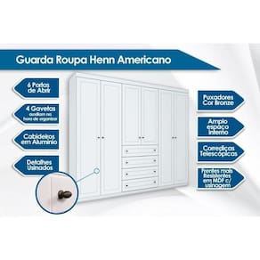 Guarda Roupa Casal 6 Portas e 4 Gavetas Americano Branco - Henn Marca: HENN