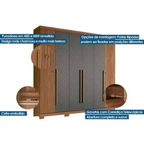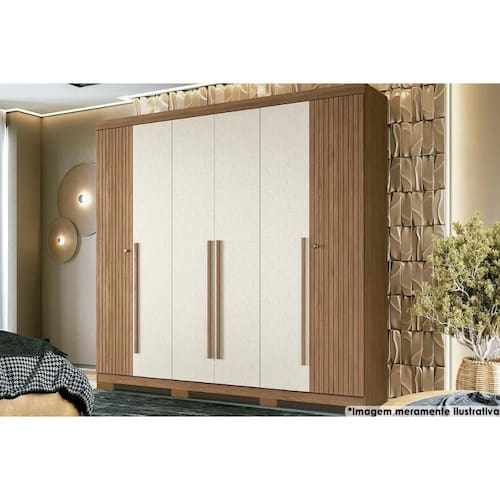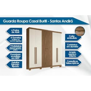 Tipo de Cabideiro - Aéreo Material dos Cabideiros - Cabideira Metálico Tipo de Dobradiças - Dobradiças Metálicas Diferenciais das Portas - Cofre Embutido Quantidade de Portas - 4 Portas de Abrir Tipo de Corrediça - c/ Corrediças Telescópicas Quantidade de Gavetas - 4 Gavetas Tipo dos Pés - Pés de Madeira Quantidade de Prateleiras - 7 Quantidade de Nichos - 2 Nichos