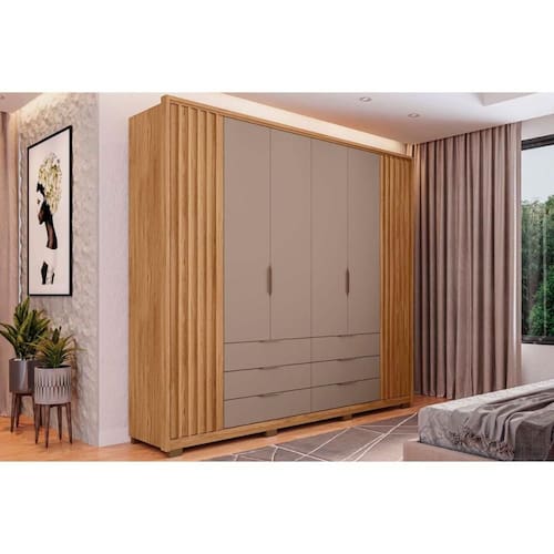 Tipo de Cabideiro - Aéreo Material dos Cabideiros - Cabideira Metálico Tipo de Porta do Guarda-Roupa - Portas de Bater Material das Portas - Portas em MDP Diferenciais das Portas - Portas Ripadas Quantidade de Portas - 6 Portas de Abrir Material das Gavetas - Gavetas em MDP Quantidade de Gavetas - 6 Gavetas Tipo dos Pés - ABS/PVC Quantidade de Pés - 8 pés Material das Prateleiras - Prateleiras em MDP Quantidade de Prateleiras - 10