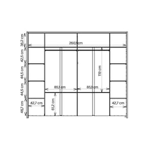 Dimensões(Cm): Comprimento(Profundidade): 57cm x Largura: 268cm x Altura: 234,2cm
