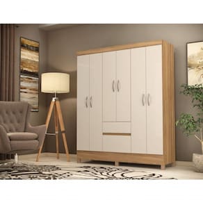 Guarda Roupa 6 Portas Forggia Amendola Off-white Esse guarda roupa foi pensado em quem não dispensa um bom espaço para pendurar suas roupas. Conta com seis portas com dobradiças metálicas, possibilitando o fácil acesso a qualquer seção do produto. Ele conta também com duas gavetas externas de fácil acesso e excelente profundidade e corrediças metálicas
