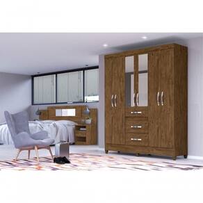 Guarda Roupa 6 Portas Hugh Castanho Wood Com Espelho O Guarda Roupa além de ser moderno e prático ainda é uma ótima opção para quem precisa aumentar a usabilidade no espaço do quarto.