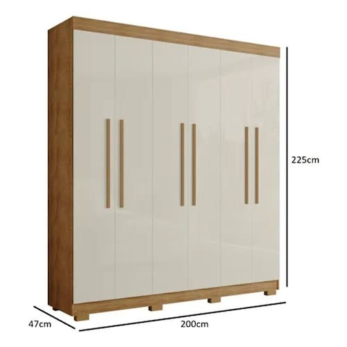Quarto bagunçado nunca mais! O Roupeiro Casal Porto Bello Plus, tem espaço de sobra para você guardar o que precisar, e ainda complementar a decoração do ambiente com design moderno e super funcional. São 6 portas de bater, 4 gavetas com corrediças telescópicas, prateleiras, 2 cabideiros em alumínio e maleiro a disposição para você colocar objetos, artigos de beleza, roupas dobradas nas prateleiras ou esticadas nos cabides para não amassar, enfim, opções de espaço não vão faltar!Dimensão do Produto Montado:Largura: 200 cmAltura: 225 cmProfundidade: 47 cmPeso Aproximado: 146,65 kgCaracterísticas:Material da Estrutura: MDF e MDP 15mmAcabamento: Pintura UVPossui Portas: SimPossui Gavetas: SimQuantidade de Gavetas: 04 GavetasTipo de Corrediças: Corrediças telescópicasQuantidade de Portas: 06 PortasTipo de Portas: ConvencionalPossui Cabideiros: Sim