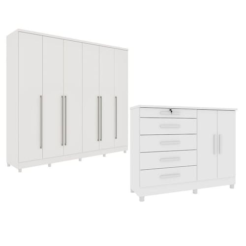 GUARDA ROUPA 6 PORTAS PORTUGAL E COMODA 5 GAVETAS ISTAMBUL COM PÉS