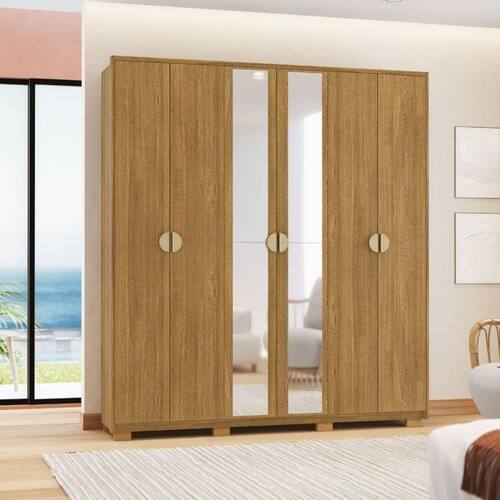 Feito em MDF, possui 6 portas, 4 gavetas e 2 cabideiros.