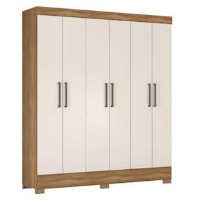 Esse guarda roupa se destaca pela configuração interna, oferecendo excelente distribuição com duas gavetas e diversas possibilidades para utilização das prateleiras e três cabideiros metálicos para roupas longas