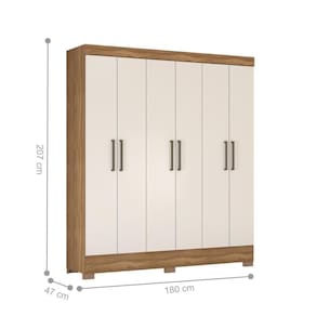 PRODUTO PRECISA DE MONTAGEM?: Sim, a montagem é simples mas sugerimos a contratação do nosso de montagem (para os CEPs em que o está disponível) ou de algum experiente de sua preferência | MATERIAL PARA FILTRO: MDP | DESCRIÇÃO DO TAMANHO: Altura: 207 cm, Largura: 180 cm, Profundidade 47 cm | CORES DO PRODUTO (FILTRO DE CORES): Amêndoa | CONTEÚDO DA EMBALAGEM: 1 Guarda Roupa | PESO PRODUTO COM EMBALAGEM (KG): 86,6 | MODELO: Guarda Roupa 6 Portas Virgina Amendola Off-White | INSTRUÇÕES/CUIDADOS: Limpar com pano macio e seco, não utilizar produtos abrasivos. | LARGURA DO PRODUTO (CM): 180 | LARGURA PRODUTO COM EMBALAGEM (CM): 62 | COMPRIMENTO DO PRODUTO (CM): 47 | PESO DO PRODUTO (KG): 85,8 | COMPRIMENTO PRODUTO COM EMBALAGEM (CM): 207 | ALTURA DO PRODUTO COM EMBALAGEM (CM): 17 | COR PREDOMINANTE: Amêndoa | ESTADO DE ORIGEM: PR | MATERIAL PRINCIPAL: MDP | ALTURA DO PRODUTO (CM): 207