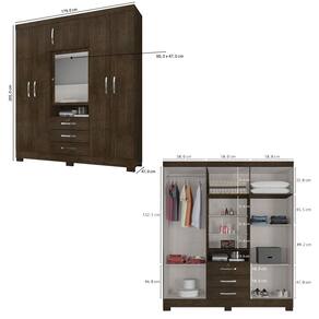 Materiais: Estrutura em MDP de 12mm (Portas e Frente de Gaveta em MDP de 15mm e fundo de 3mm), puxadores, dobradiças metálicas, cabideiro e corrediças.