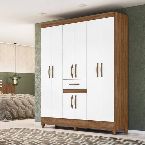 O Guarda-Roupa Portugal possui acabamento em impressão UV. São, ao todo, 8 portas de bater e 1 gaveta externa. Além disso o produto conta com puxadores cromados.