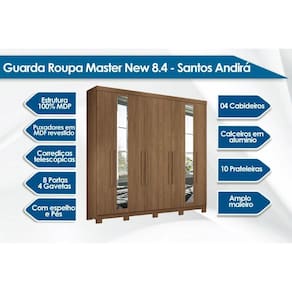 Guarda Roupa Casal 8 Portas (2 c/ Espelho) e 4 Gavetas c/ Pés Master New 8.4 Jatobá - Santos Andirá
