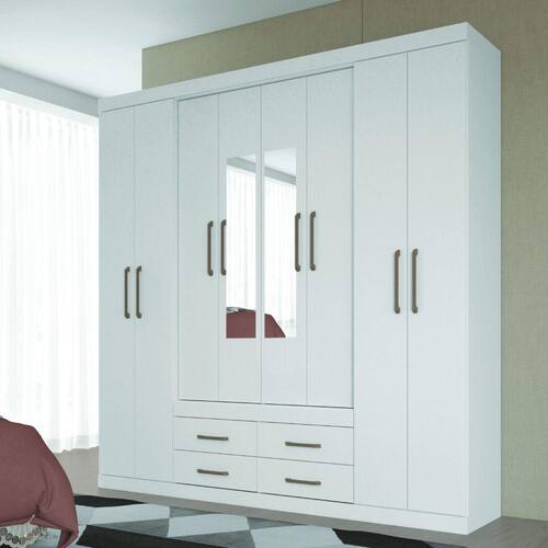 Guarda roupa Nápoles é um móvel prático e muito funcional, ele se encaixa em qualquer ambiente, seja quarto de casal ou solteiro. Com 8 portas e 4 gavetas, esse roupeiro garante muito espaço para guardar todos os pertences. Puxadores em ABS garantem um design moderno além de suas portas recuadas. Internamente possui amplas prateleiras para guardar todos os pertences de forma organizada, assim como edredons, cobertores, caixas, etc. Possui 3 cabideiros em alumínio para pendurar roupas com muita organização e segurança. Possui também 2 espelhos para serem instalados nas portas.
