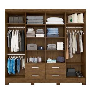 Possui 8 portas, 4 gavetas com corrediças telescópicas e puxadores em MDF castanho/baunilha.