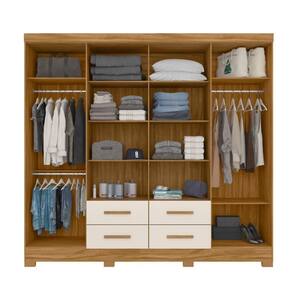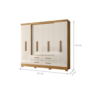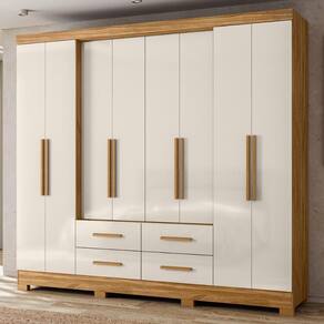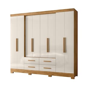 Feito em MDP, 8 portas, sendo portas de giro, 4 gavetas com corrediças telescópicas, porta centrais recuadas, espaço ele/ela, pés em pvc, puxadores em MDF, 8 prateleirapara centrais, acompanha espelho fixado nas portas.