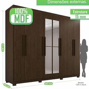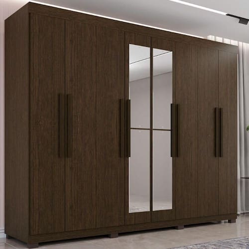 Guarda Roupa 8 Portas Com Espelho 4 Gavetas Milano Imop Móve Cacau Guarda Roupa 8 Portas com Espelho 4 Gavetas Milano Imop Moveis Procurando por um roupeiro espacoso e que tenha um design super elegante? O Roupeiro Milao 8 portas e o ideal para voce. Possui um visual classico, com puxadores em madeira que conferem maior estabilidade ao abrir e fechar, alem de trazer maior elegancia ao movel. Conta com 4 gavetas com fundo reforcado para acomodar as pecas mais delicadas, cabideiros em aluminio para as pecas mais pesadas e divisao ele/ela, que facilita a divisao entre o casal. Com estruturas em chapas de 15mm. As dobradicas sao metalicas, tornando as portas mais firmes e faceis de abrir, sem perder a regulagem com o tempo. em sua confeccao e utilizada a pintura UV, que preservam a sua cor por mais tempo.