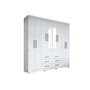 Guarda Roupa Casal 8 Portas (2 c/ Espelho) e 6 Gavetas c/ Pés Liverpool Branco - Santos Andirá