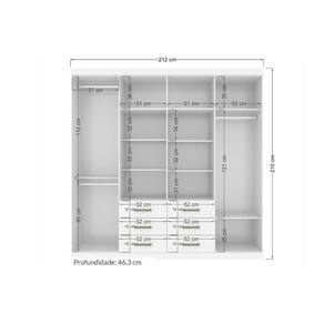 Dimensões(Cm): Comprimento(Profundidade): 46,3cm x Largura: 212cm x Altura: 215cm