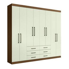 Características: Estrutura: MDP 12mm e 15mm Acabamento: Pintura e Verniz Quantidade de Portas: 8 de Abrir/Bater Tipo de Dobradiças: Metálicas Quantidade de Gavetas: 6 Tipo de Corrediças: Metálicas Telescópicas Quantidade e Tipo de Cabideiros: 4 em Alumínio Tipo de Puxador: Plástico ABS Tipo de Pés: Rodapé Sistema de Montagem: Cavilhas, Parafusos e Minifix Itens Inclusos: 1 Guarda Roupa, Kit Ferragens e Manual de Montagem Garantia: 3 meses