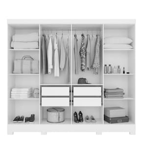 Possui 8 portas, 4 gavetas internas comcorrediças metálicas e puxadores em MDF.