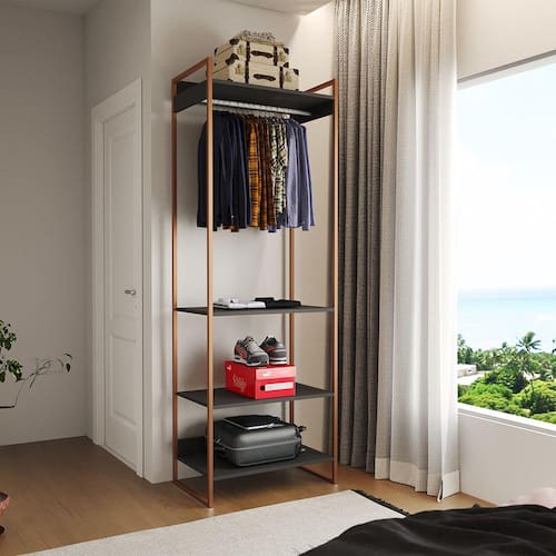 Com o Guarda-Roupa Industrial será muito fácil manter a organização de suas roupas. Por ter a característica de closet, ele deixa todas as peças à mostra e oferece espaço para as suas vestimentas e acessórios que precisam ficar pendurados. Com ele, a organização, beleza e bom gosto são garantidos em seu lar.