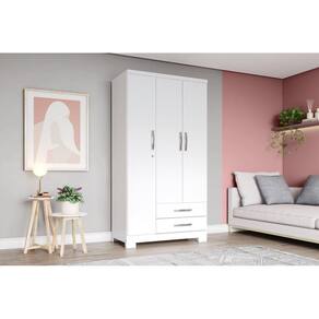 Guarda-roupa prático com uma porta com chave e 02 gavetas na parte externa para organização de peças menores.