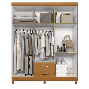 Alem disso, o guarda-roupa conta com 4 prateleiras e cabideiros, oferecendo versatilidade na hora de organizar suas pecas. Seu design contemporaneo se integra facilmente a diferentes estilos de decoracao, tornando-se um elemento chave no seu espaco. A montagem e necessaria, mas o resultado final certamente valera a pena, transformando seu quarto em um mais pratico e elegante.