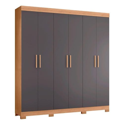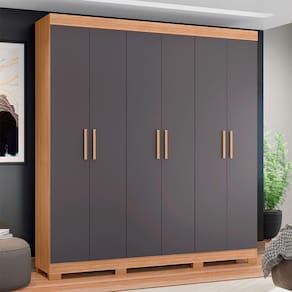 Guarda Roupa Amarok 6 Portas Albatroz Moveis Nature/titanium Guarda Roupa Amarok 6 Portas Albatroz Moveis Transforme seu quarto em um espaco organizado e elegante com o Guarda Roupa Amarok. Feito em MDP de alta qualidade, esse movel e ideal para quem busca funcionalidade e estilo em um so produto. Com um design sofisticado, ele se adapta a diferentes decoracoes, trazendo leveza e modernidade ao ambiente. Suas dimensoes generosas ( de altura, 2m de largura e de profundidade) oferecem amplo espaco para guardar suas roupas, calcados e acessorios. O Guarda Roupa conta com 6 portas do tipo bater, com dobradicas metalicas para maior resistencia e durabilidade, garantindo facil acesso ao seu conteudo. O interior foi projetado com 7 prateleiras, 2 gavetas e um cabideiro de aluminio, permitindo que voce organize suas roupas de forma pratica e acessivel. Os puxadores em MDF revestidos conferem um toque de sofisticacao, enquanto os pes em ABS proporcionam estabilidade e seguranca ao movel. Ideal para quartos de todos os tamanhos, o Guarda Roupa Amarok e a escolha perfeita para quem valoriza qualidade, design e funcionalidade. Organize seu espaco e viva com mais praticidade e estilo!