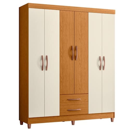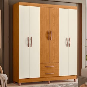 Produto: Guarda Roupa Âmbar 6 Portas Cor: Cinamomo/Off White Puxadores Com Acabamento Metalizado Bronze Escala de Brilho: Fosco/Brilho Altura (m): 1,89 Largura (m): 1,54 Profundidade (m): 0,47 Peso (kg): 75,1 Material: MDP Acabamento: Pintura Uv Material do Puxador: Abs Tipo de Cabideiro: Madeira Quantidade de Gavetas: 2 - Tipo de Corrediça: Metálicas Quantidade de Portas: 6 - Tipo de Porta: Bater Quantidade de Prateleiras: 4 Rodízios: Não Quantidade de Pés: 6 - Material dos Pés: ABS Necessita Montagem: SIM Espelho: Manutenção: Limpar Com Flanela Ou Pano Macio Seco, Não Utilizar Produtos Abrasivos, Desengordurantes, Álcool Ou Solvente. Não Expor O Produto Diretamente À Luz Solar E À Umidade. Garantia: 3 Meses
